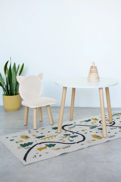Комплект: круглий столик та стільчик Dreamer Котик, 2-4 роки, Молочний