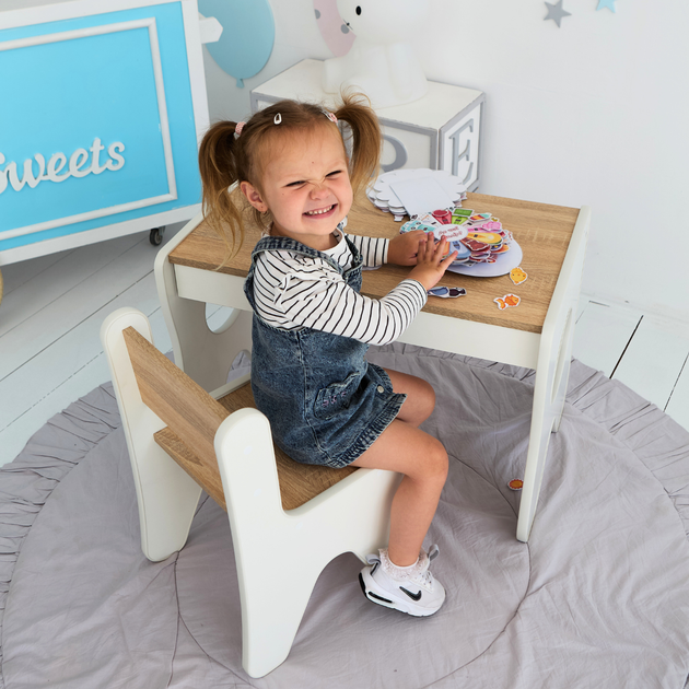 Столик і стілець для дітей 704551/ дитячий ігровий набір зі стола та стільчика / білий з деревом