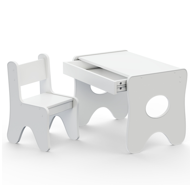 Дитячий столик та стільчик 704551 для малювання з висувним ящиком, для їжі та занять, білий