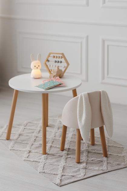 Комплект: Кріселко Зайченя +столик круглий, 2-4 роки, Молочний
