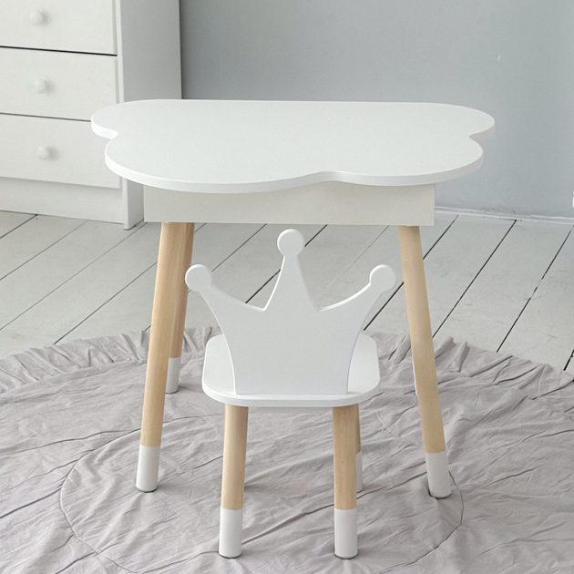 Дитячий білий столик хмаринка з нішею і стільчик корона біла 85295
