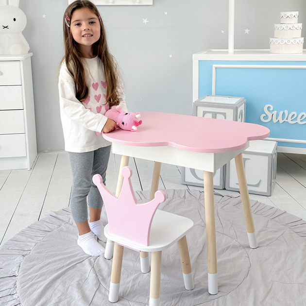 Дитячий стіл рожевий хмарка з нішею і стільчик корона рожевий 93061