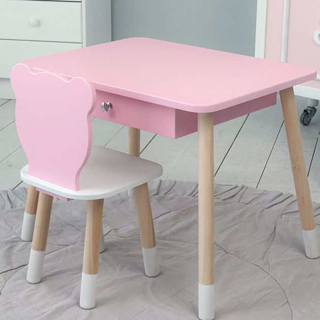 Дитячий столик і стільчик ведмедик рожевий. Столик із шухлядою для олівців і розмальовок