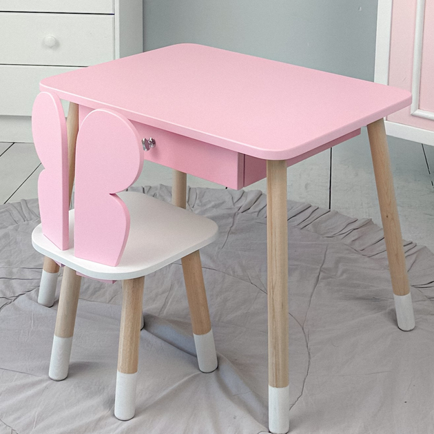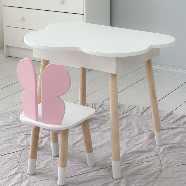 Стол хмаринка з нішею білий та стілець метелик рожевий 69387