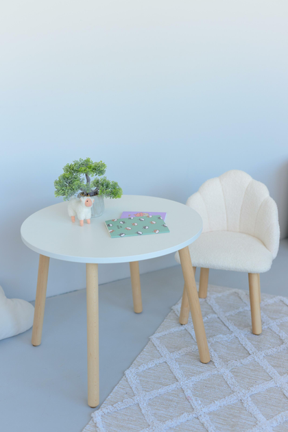 Комплект: Кріселко Мушля+столик круглий, 2-4 роки, Букле Молочний