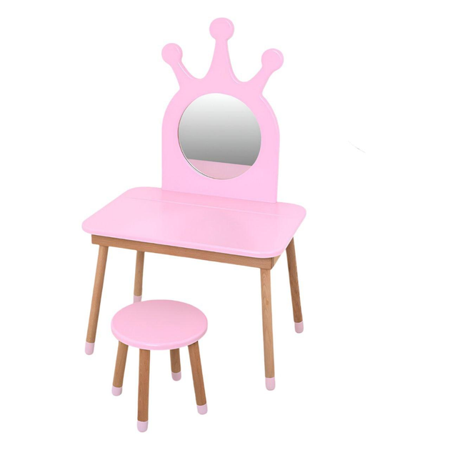 Дерев'яний стільчик і столик-трюмо 03-01PINK-BOX "Корона" із дзеркалом, рожевий