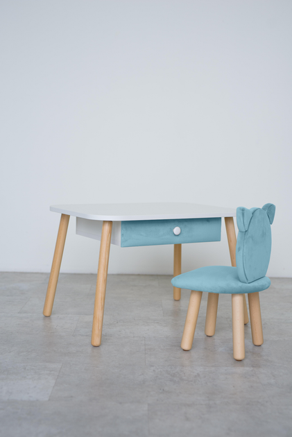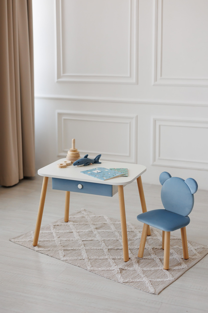 Комплект: столик з шухлядою та стільчик Dreamer Ведмедик, 3-5 років, Блакитний