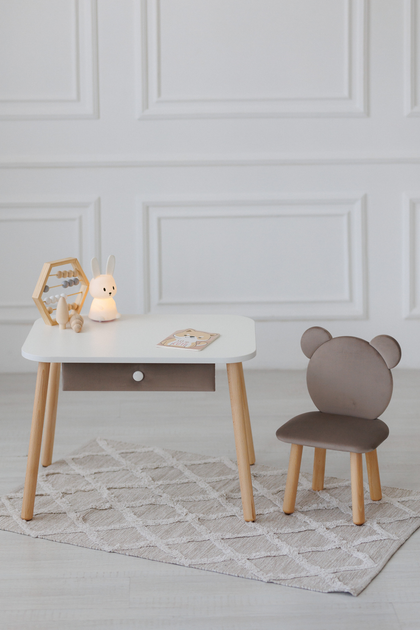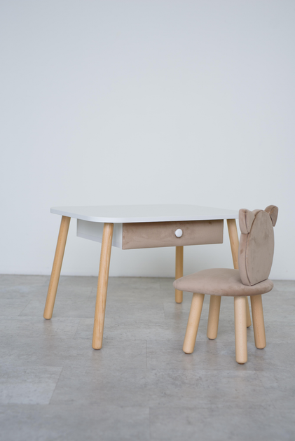 Комплект: столик з шухлядою та стільчик Dreamer Ведмедик, 5-7 років, Капучино