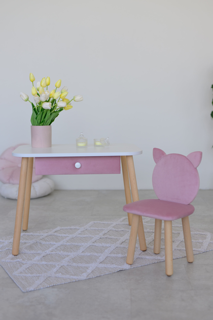 Комплект: столик з шухлядою та стільчик Dreamer Котик, 3-5 років, Ніжно-рожевий