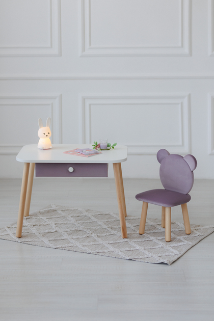Комплект: столик з шухлядою та стільчик Dreamer Ведмедик, 2-4 роки, Бузковий