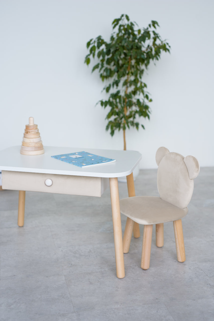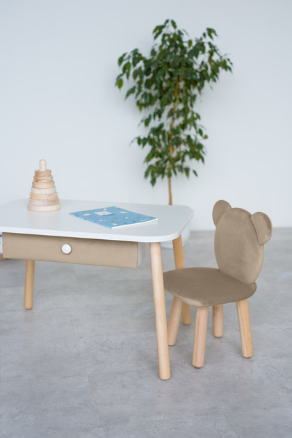 Комплект: столик з шухлядою та стільчик Dreamer Ведмедик, 5-7 років, Бежевий