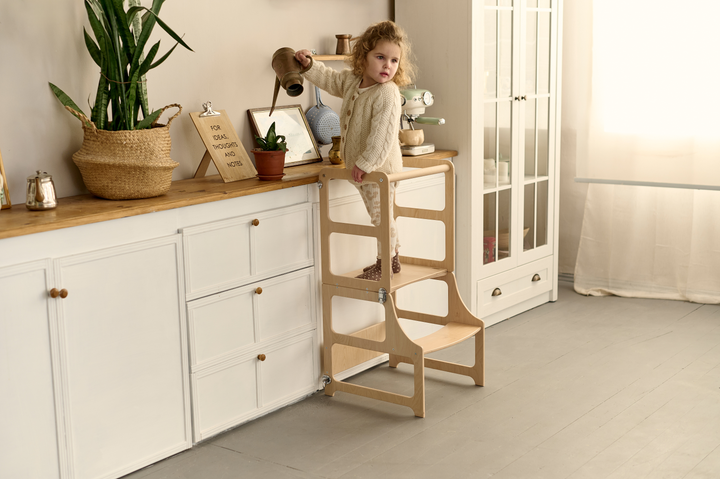 Стіл Монтессорі Дитячий столик - трансформер для творчості 3 в 1 дерев'яний Вежа 1 Woody Натуральний