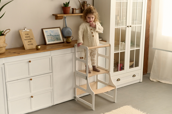 Вежа Монтессорі, вежа помічника - стіл + стільчик 2 в 1, вежа-стіл 1 Woody дерево Білий
