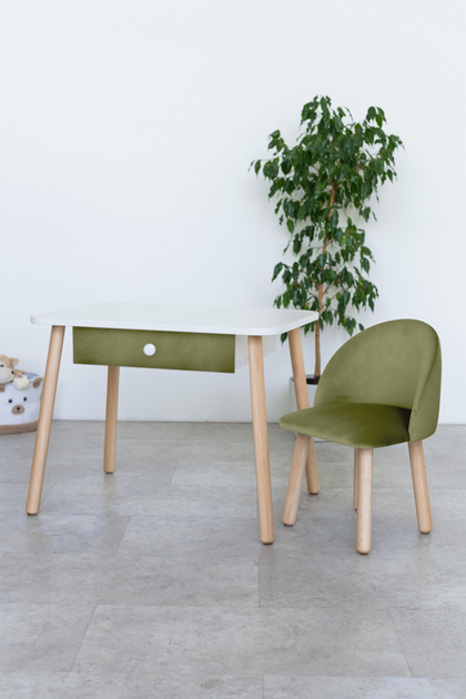 Комплект: Кріселко+столик із шухлядою, 5-7 років, 115-125 см., Оливка