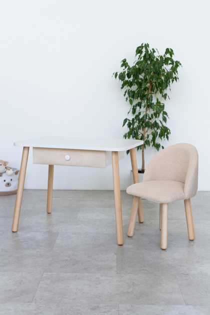 Комплект: Кріселко+столик із шухлядою, 2-4 роки, 90-105 см., Букле Бежевий Cвітлий