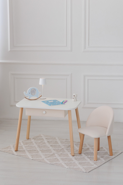 Комплект: Кріселко+столик із шухлядою, 3-5 років, 105-115 см., Молочний