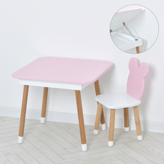 Столик зі стільцем "Ведмедик" 07-025R-BOX з ящиком, рожево-білий
