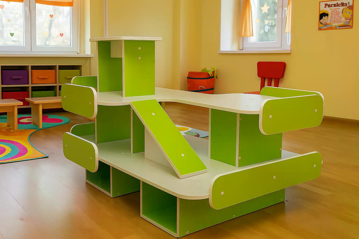 Стінка дитяча ігрова Гараж для дитячих навчальних закладів DS-70 Lime-Yellow
