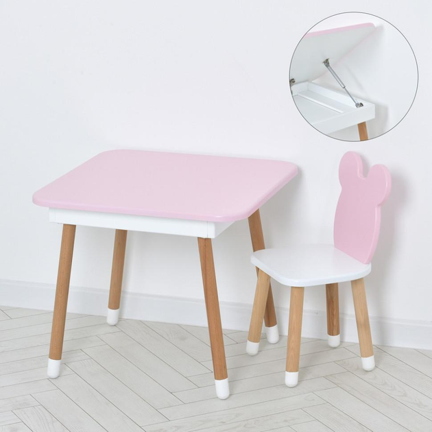 Столик зі стільцем "Ведмедик" 07-025R-BOX з ящиком, розово-білий