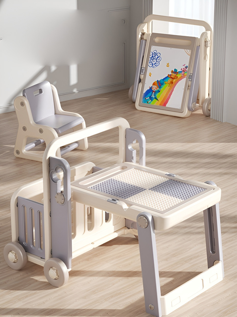 Стіл трансформер дитячий 6в1 Terrio Lorry Сірий зі стільчиком мольбертом пісочницею лего панеллю органайзером, ігровий набір