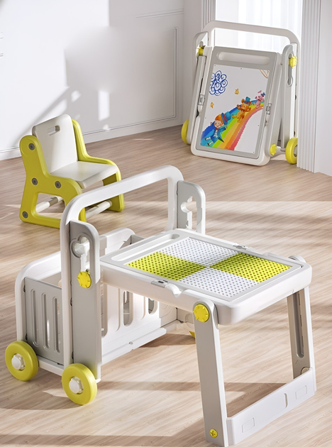 Стіл трансформер дитячий 6в1 Terrio Lorry Сірий з салатовим зі стільчиком мольбертом пісочницею лего панеллю органайзером, і
