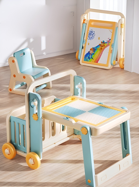 Дитячий стіл трансформер 6в1 Terrio Lorry блакитний оранжевий стіл зі стільчиком зростаючий пластиковий ігровий стіл дитячі