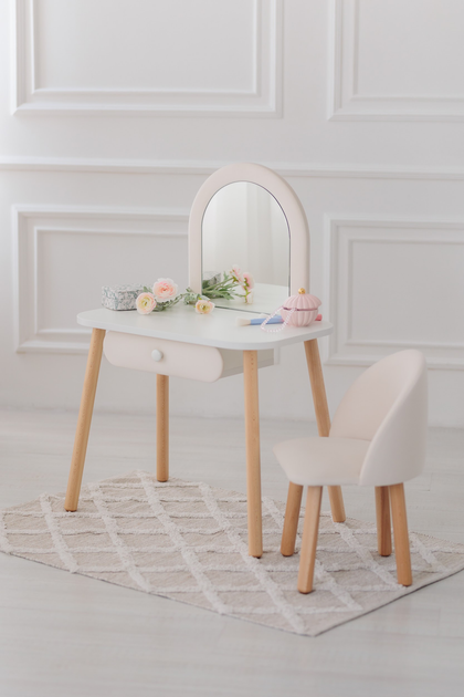 Комплект: Дитяче трюмо + кріселко (без бантика), 2-4 роки, 90-105 см., Молочний