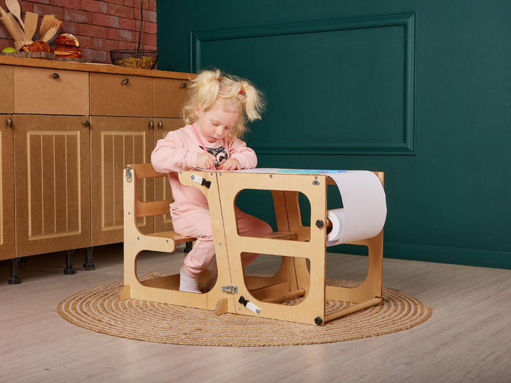 Вежа помічника з захисною сіткою та тримачем для паперу. Дитячий стіл і стільчик - вежа монтессорі 2 в 1 Little Mark's Lab.
