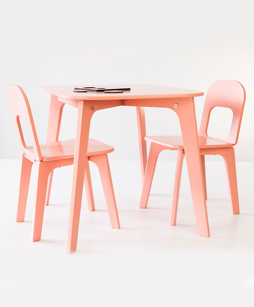 Набір стіл та 2 стільці з фанери KASHTANCHIK 2-4 роки кораловий