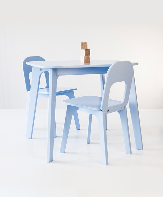 Набір стіл та 2 стільці з фанери KASHTANCHIK 2-4 роки блакитний