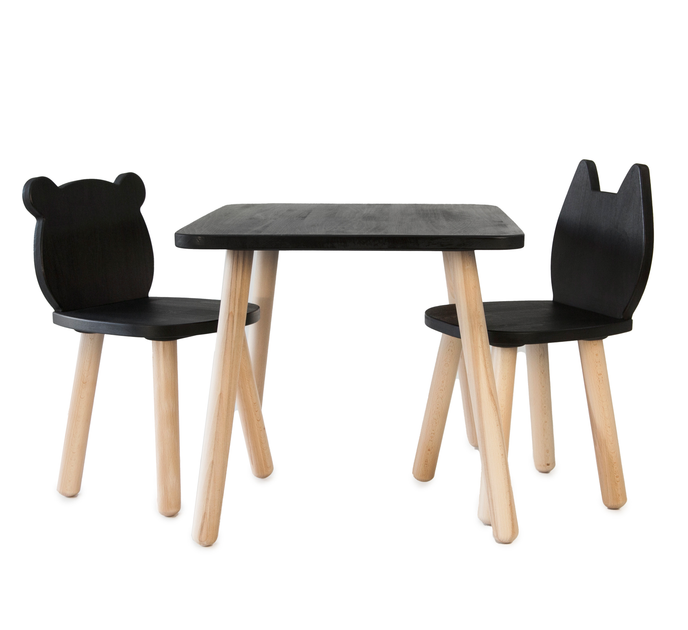 Дитячий комплект стіл та 2 стільці KASHTANCHIK (котик та ведмедик) 2-4 роки чорний
