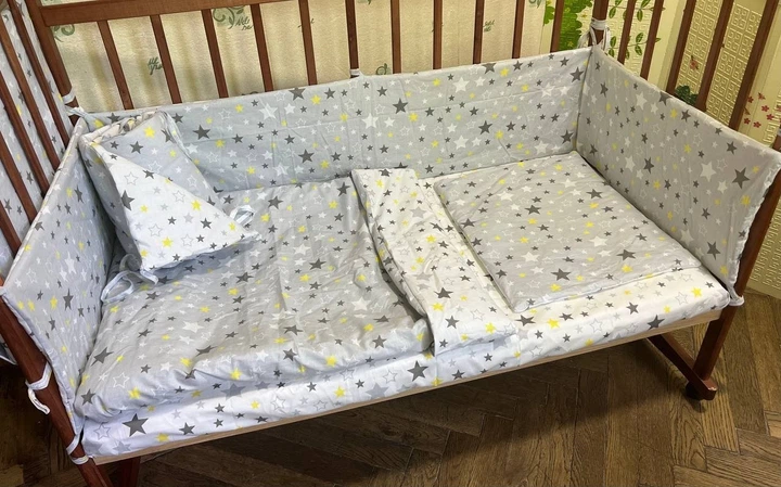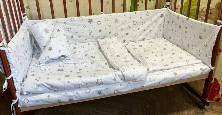 Постільна білизна в дитяче ліжечко Bloom 841 з бортиками на зав'язках та органайзером