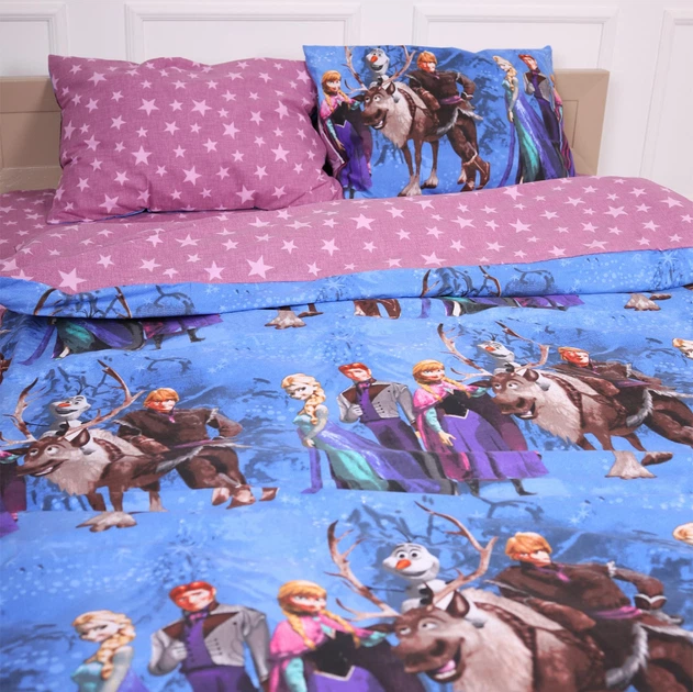 Комплект постільної білизни Бязь Холодне серце 220х240 см Рожевий з синім