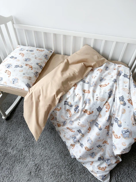 Дитяча постільна білизна в ліжечко Bunny shop сатин Кошенята з бежевим 90х120 см