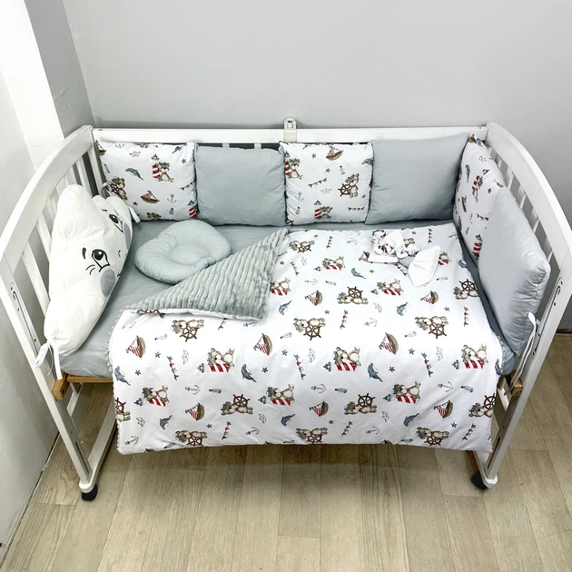 Комплект постільної білизни на три сторони ліжечка 120х60 см 13 пр. -Ведмедики-моряки з хмаринкою