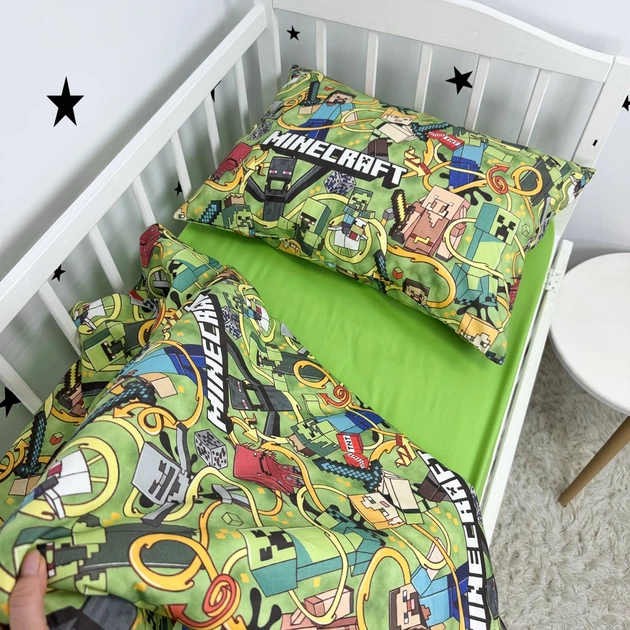 Постільна білизна для дитячого ліжка 120х60 см (підковдра 140х110 см) Oh My Kids «Майнкрафт» зелений ранфорс