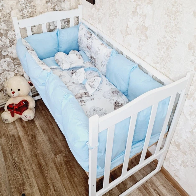 Дитячий постільний набір Bonna у ліжечко для новонароджених Тваринки-1 блакитний з білим