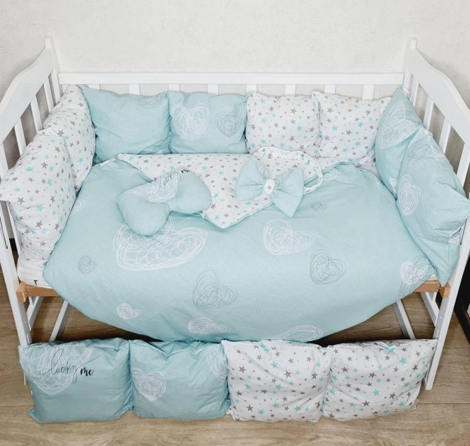 Дитячий постільний набір Bonna в ліжечко для немовлят Маленькі зірки білий з м'ятним