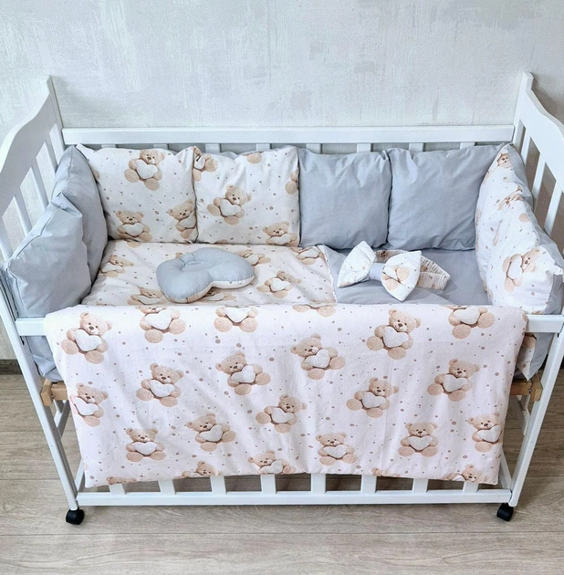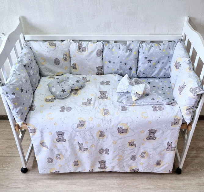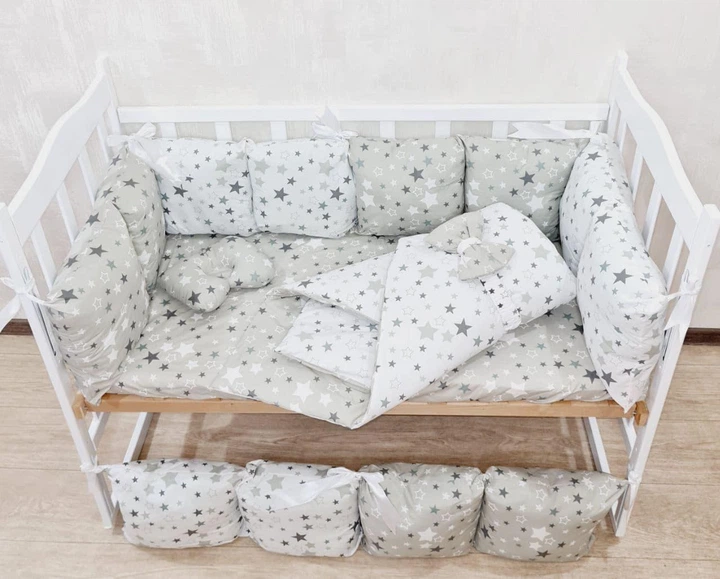 Дитячий постільний набір Bonna у ліжечко для новонароджених Маленькі зірки сірий з білим