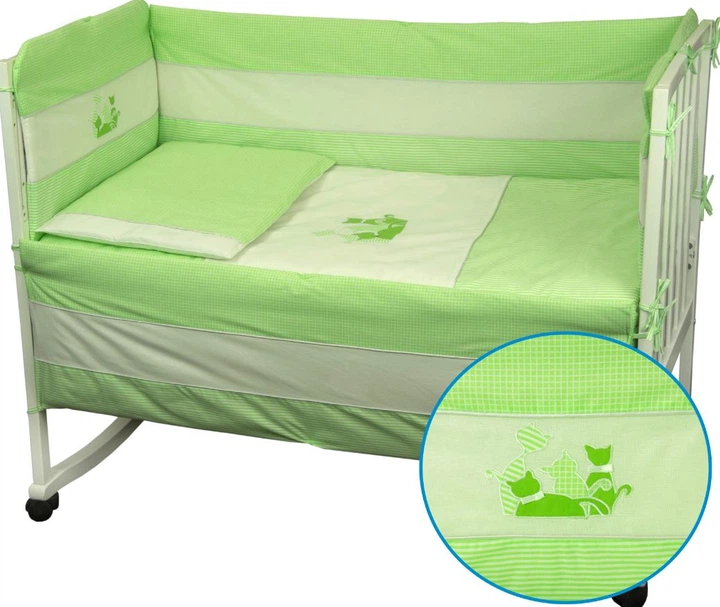 Комплект постільної білизни + бортик в дитяче ліжечко Руно бязь Кошенята салатовий