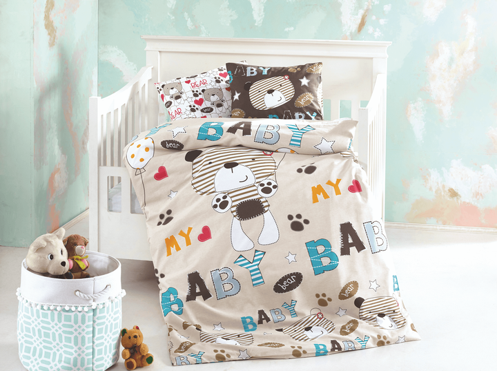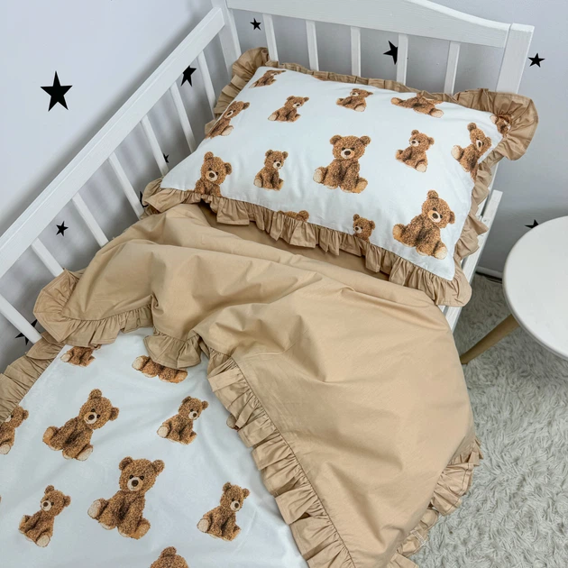Дитяча постільна білизна з рюшами у ліжко 120х60 см з підковдрою 140х110 см Oh My Kids «Beige Bear» ранфорс