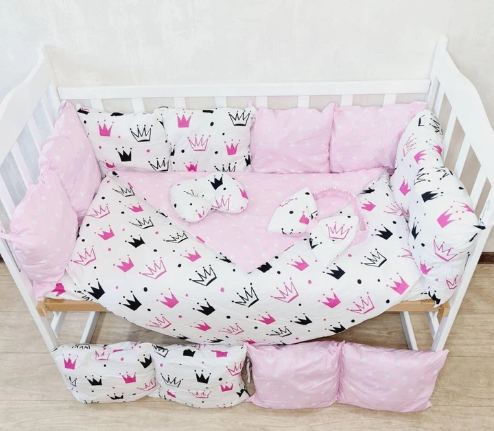 Дитячий постільний набір Bonna в ліжечко для новонароджених Корони білий з рожевим