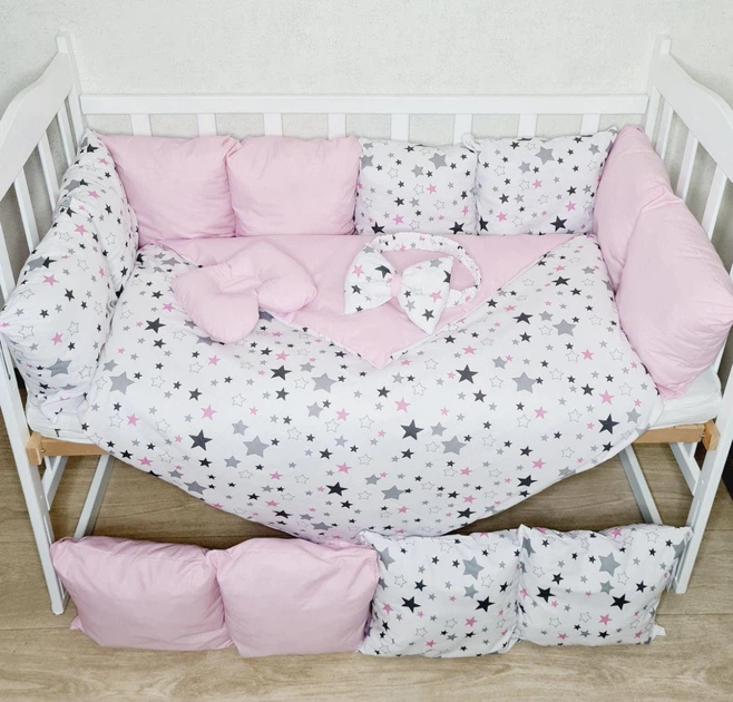 Дитячий постільний набір Bonna в ліжечко для новонароджених Зірочки білий з рожевим