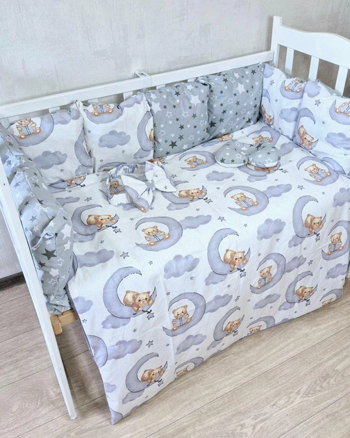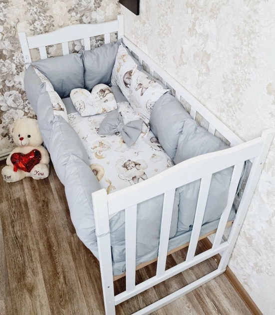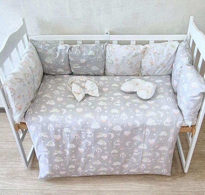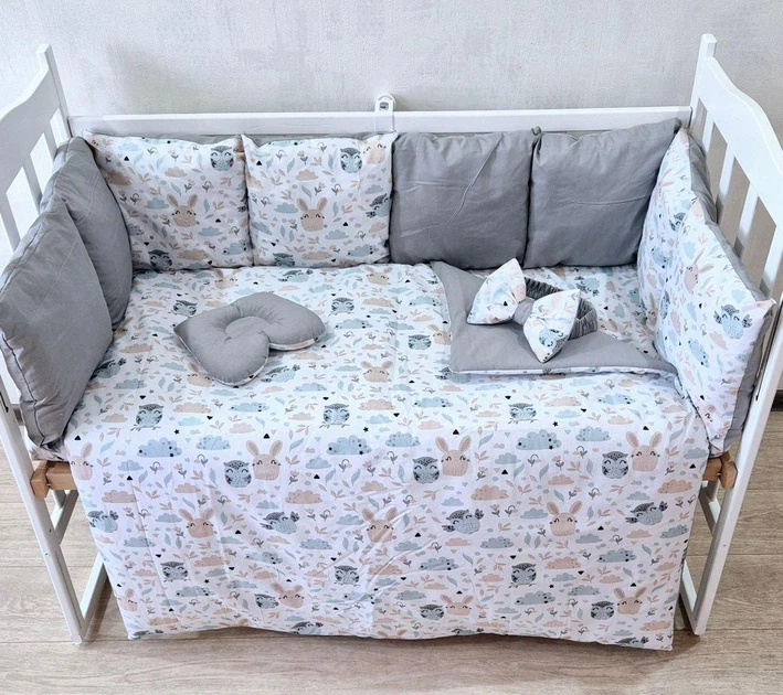 Дитячий постільний набір Bonna у ліжечко для новонароджених Тваринки-4 сірий з білим