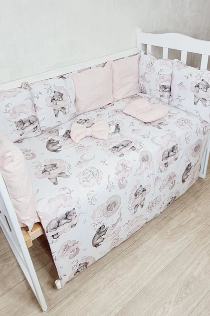 Дитячий постільний набір Bonna у ліжечко для новонароджених Тваринки-2 попелясто-рожевий
