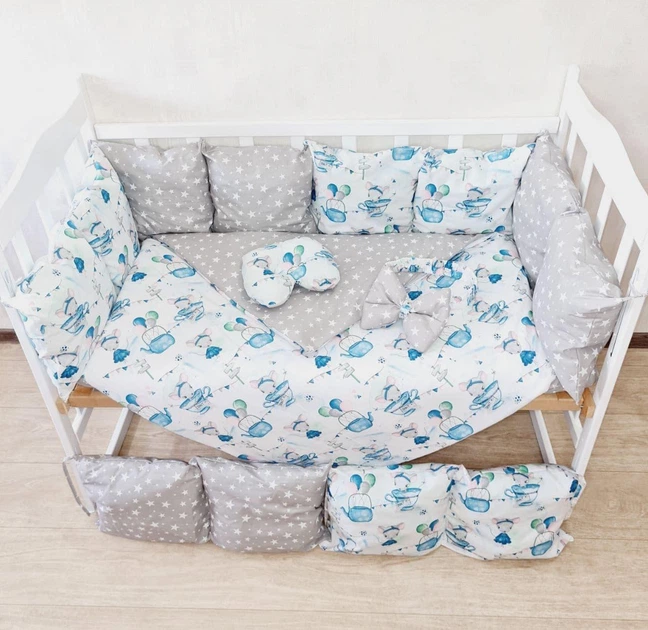 Дитячий постільний набір Bonna у ліжечко для новонароджених Тваринки-4 сірий з білим