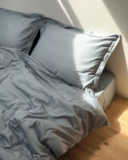 Комплект постільної білизни Cozy класичний сіро-блакитний Для немовлят 90*120 см, простирадло 60*120*12 см на резинці