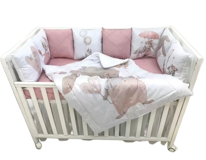 Дитячий набір постіль з бортиками в ліжечко Зайчики з кульками 120*60 см