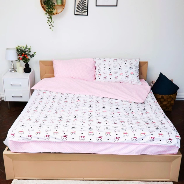 Комплект постільної білизни Ранфорс Підлітковий Французький кіт 143х210 см Рожевий