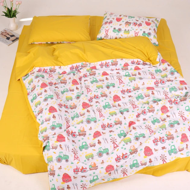 Комплект постільної білизни Ранфорс Підлітковий Весела Ферма 143х210 см Жовтий